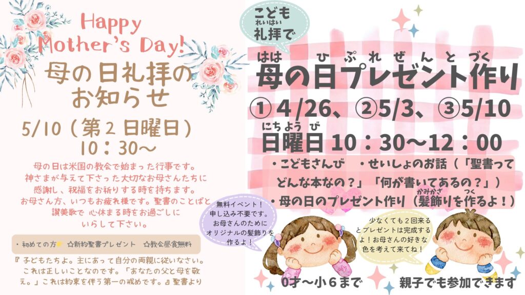 こどもさんび/せいしょのお話/母の日のプレゼント作り(2回来ると完成する髪飾りを作ります)