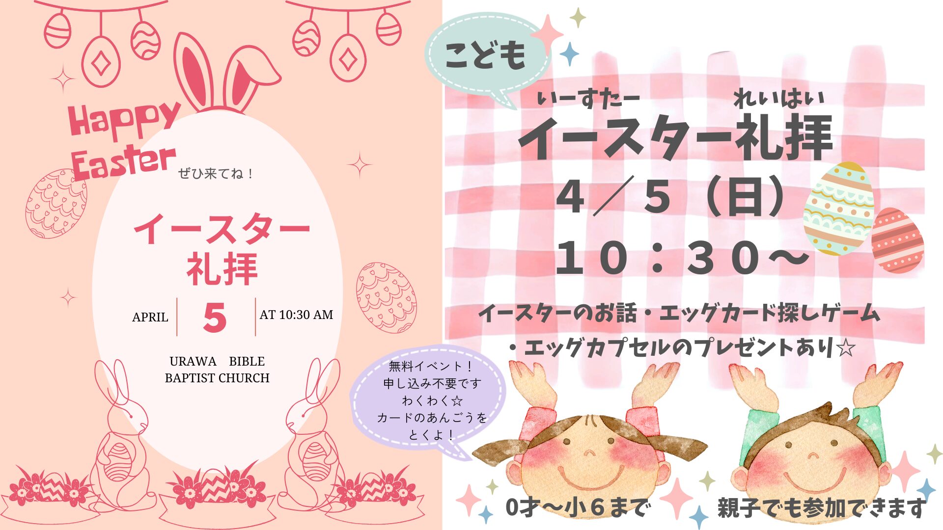 4月5日,19日(日)イースター礼拝&特別集会のおしらせ